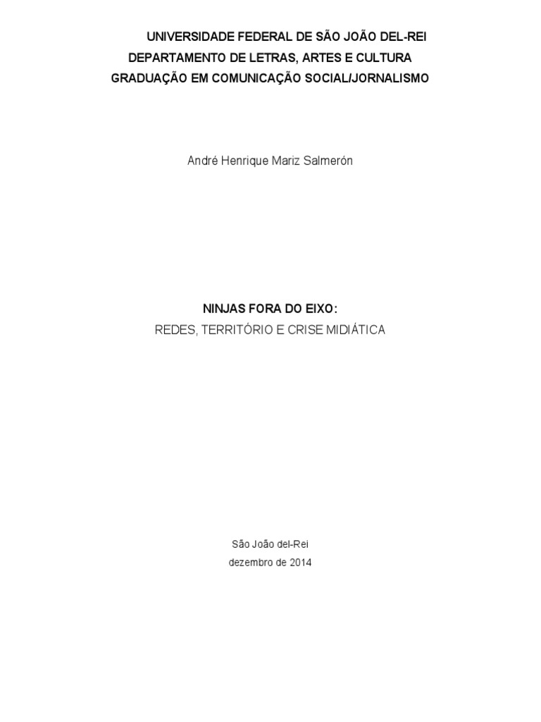 SALMERÓN, André. Coletivo Fora do Eixo e a contraposição ao modelo jornalístico neoliberal brasileiro. In: II Seminário de Argumentação e Discurso – SEDIAR. Belo Horizonte: UFMG/UESC, 2014.