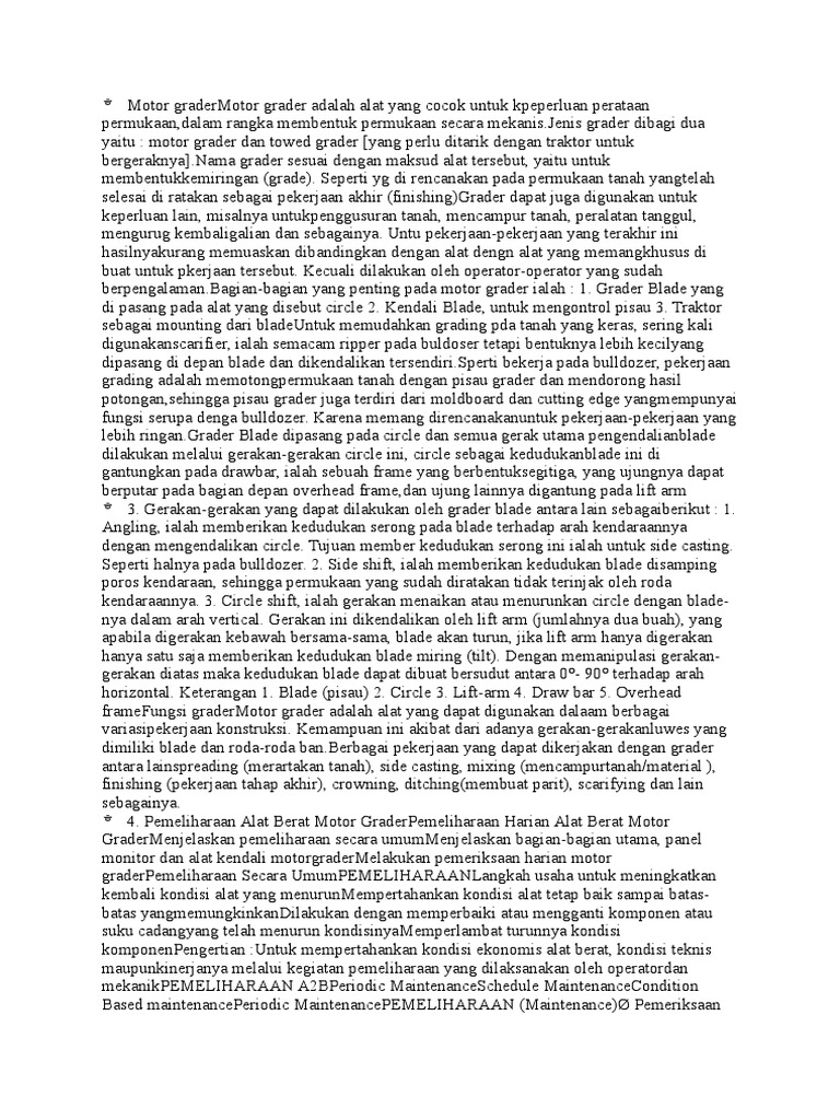 4. Pemeliharaan Alat Berat Motor GraderPemeliharaan Harian Alat Berat Motor