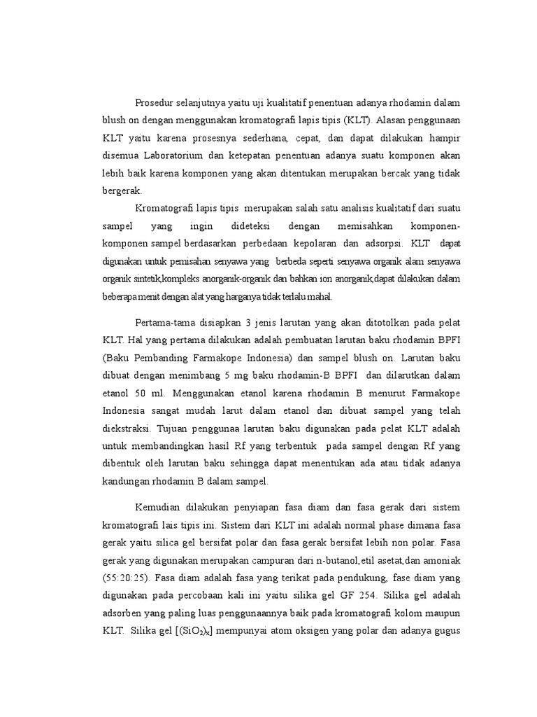 KLT. Hal yang pertama dilakukan adalah pembuatan larutan baku rhodamin BPFI