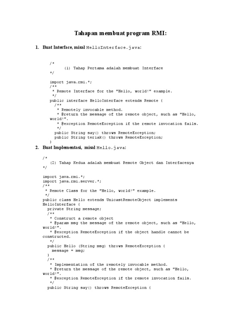 Kompilasi RMI dilakukan untuk file Implementasi yaitu file Hello.class.