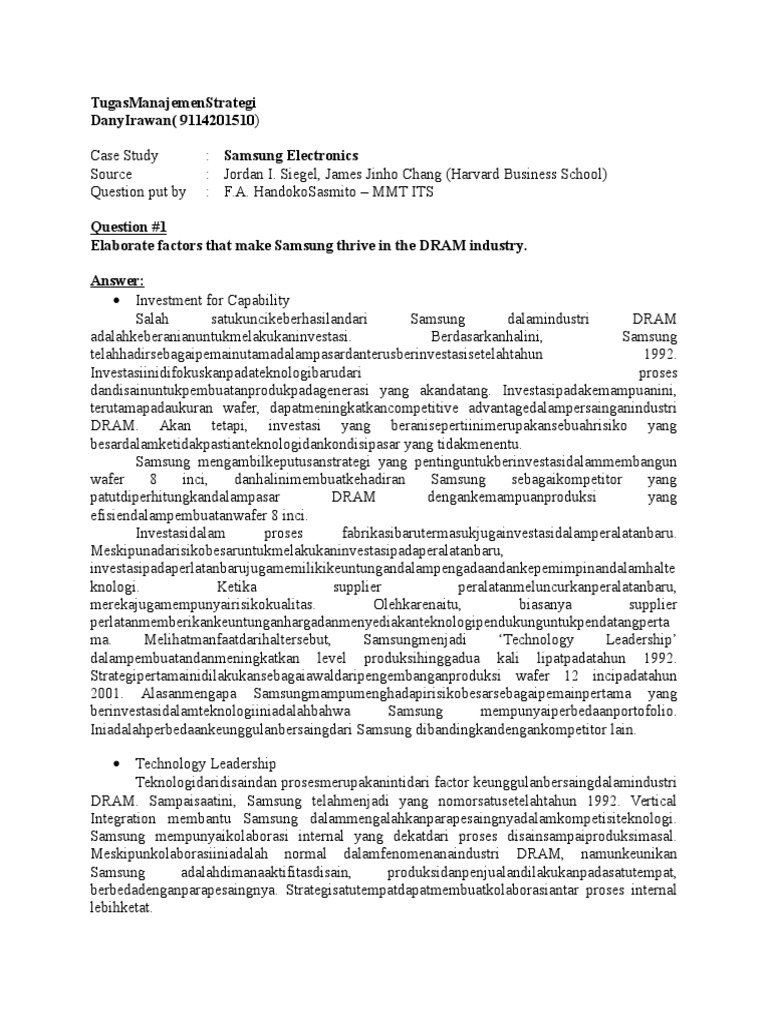 flash memory. Olehkarenaitu Samsung harusmenambahkaninvestasipada area ini.