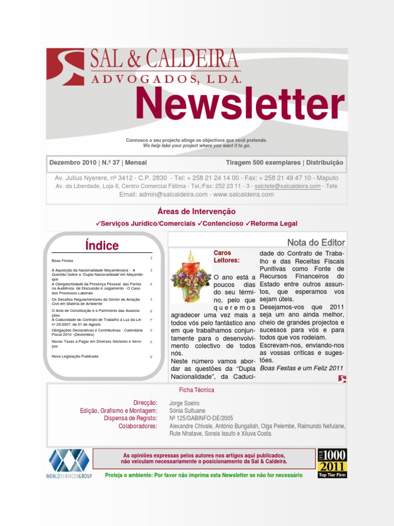 Av. da Liberdade, Loja 6, Centro Comercial Ftima - Tel./Fax: 252 23 11 - 3 - salctete@salcaldeira.com - Tete