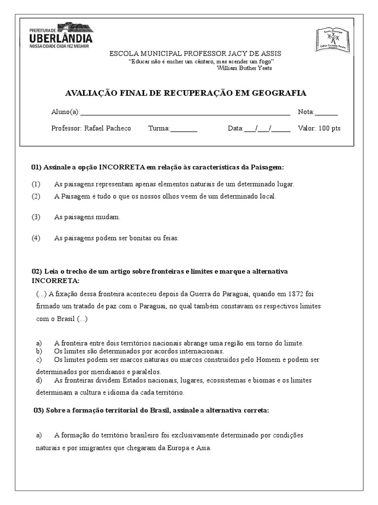 AVALIAO FINAL DE RECUPERAO EM GEOGRAFIA