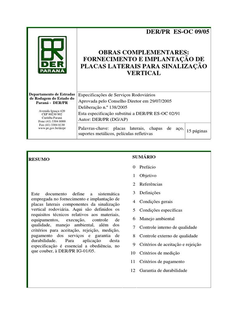 Esta especificao substitui a DER/PR ES-OC 02/91