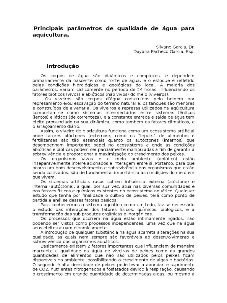 marcante a qualidade da gua de viveiros de peixes como as grandes