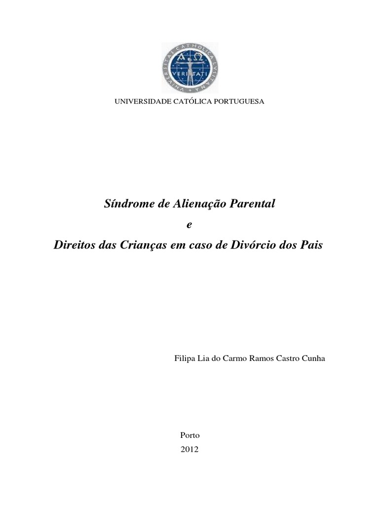132 Idem, p. 156. 133 EDUARDO SÁ/FERNANDO SILVA, Alienação Parental, Coimbra, 2011, p. 13, SANDRA FERREIRA FEITOR, A Síndrome de Alienação Parental e o Seu Tratamento à Luz do Direito de Menores, 2012 e