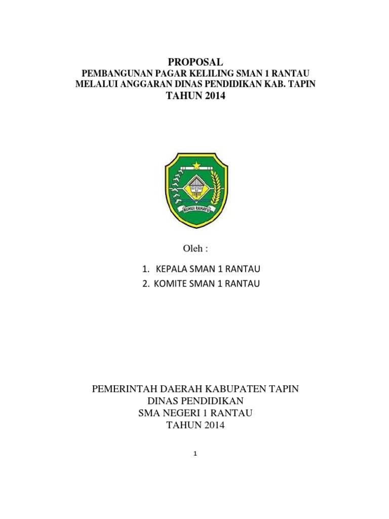 Proposal pembangunan Pagar Keliling SMAN 1 Rantau melalui Anggaran Dinas