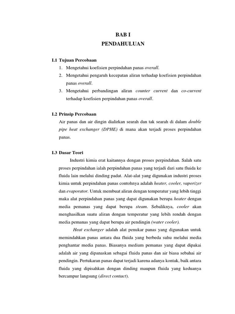 adalah double pipe heat exchanger. Tipe ini merupakan tipe yang paling