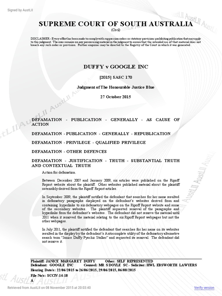 in 2012 the Autocomplete words Janice Duffy Psychic Stalker (at [267]-[270], [273][274], [279]-[282], [284]).