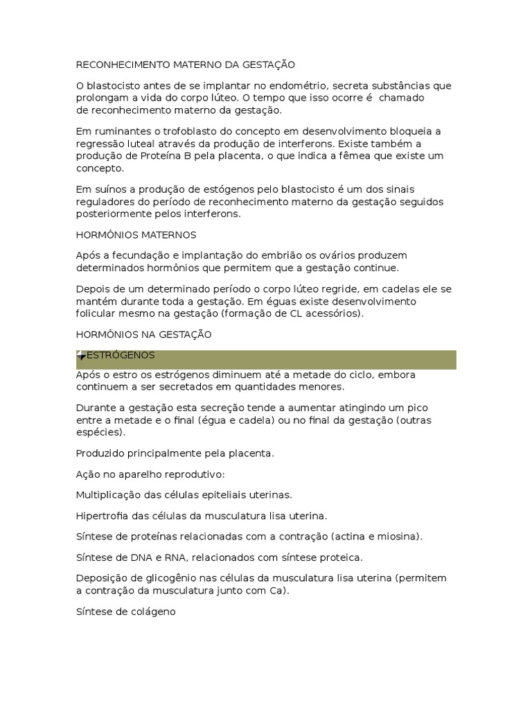 Em sunos a produo de estgenos pelo blastocisto um dos sinais