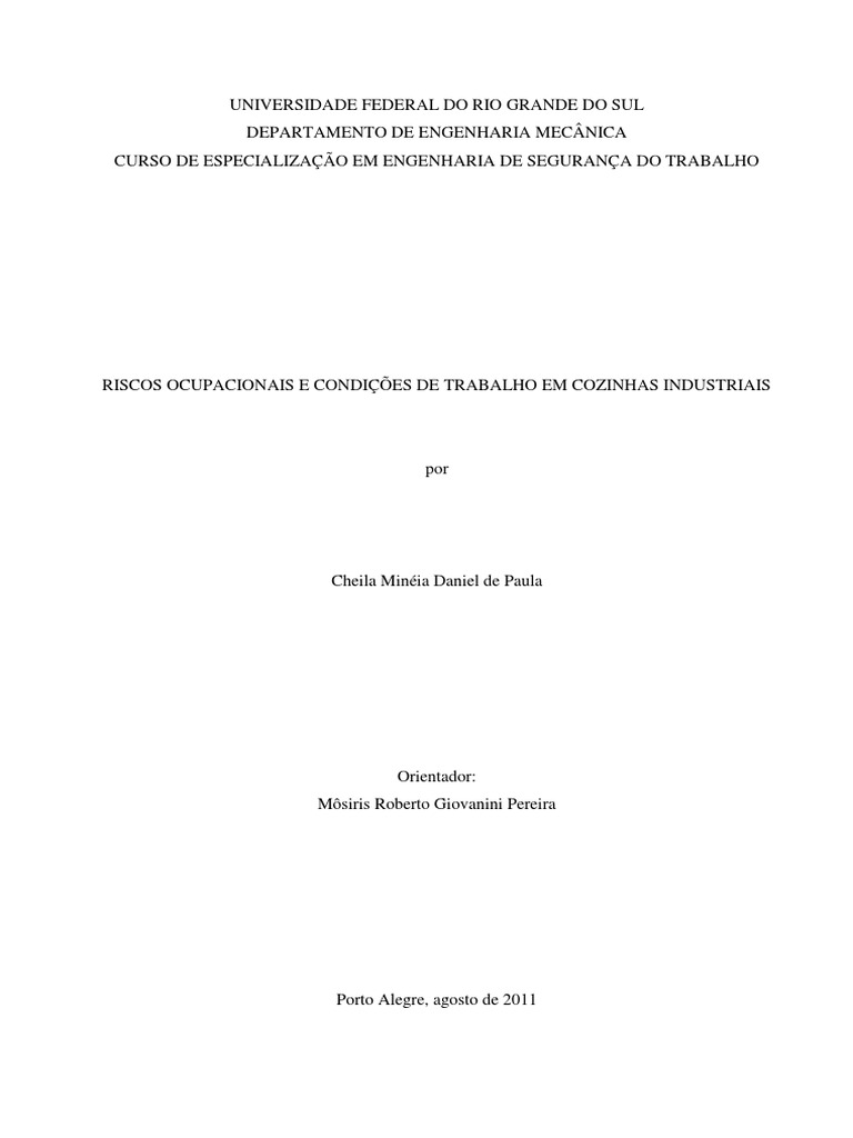 Palavras-chave: Cozinha industrial - Condies de trabalho - Segurana do trabalho