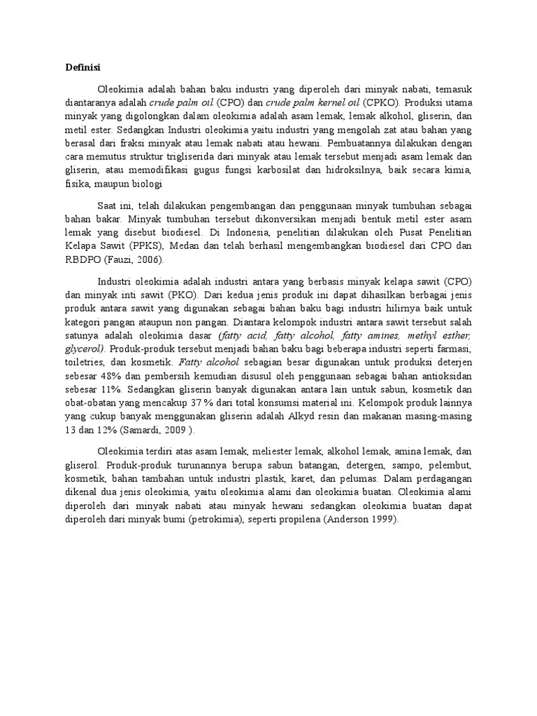 Fauzi S. 2006. Teknologi Oleokimia. Medan: Fakultas Teknik, Universitas Sumatera Utara.
