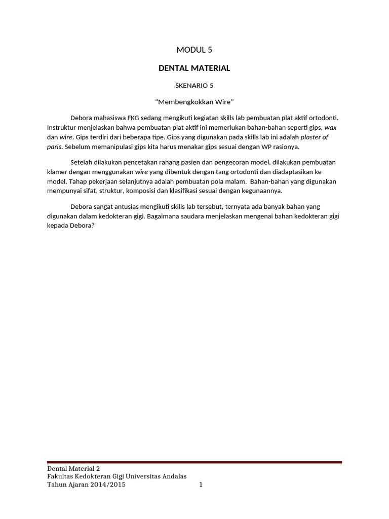 digunakan dalam kedokteran gigi. Bagaimana saudara menjelaskan mengenai bahan kedokteran gigi