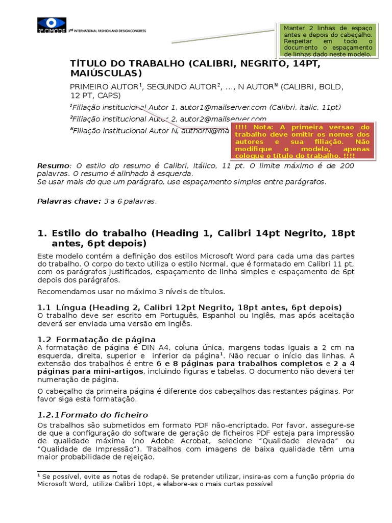 Resumo: O estilo do resumo Calibri, Itlico, 11 pt. O limite mximo de 200