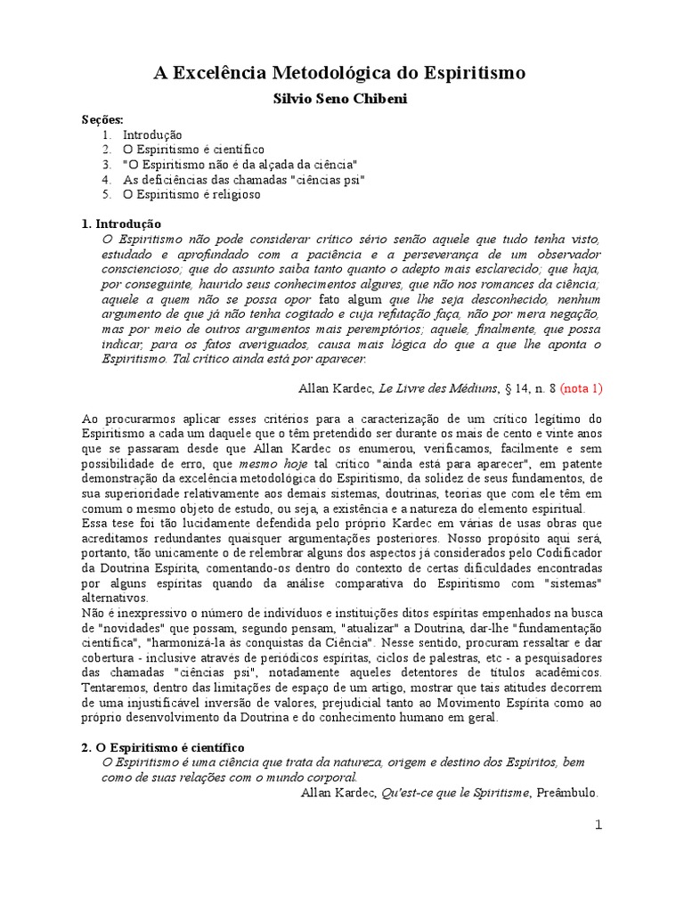 CHIBENI, S. S. "Espiritismo e Cincia". Esboo de uma anlise do Espiritismo luz da moderna