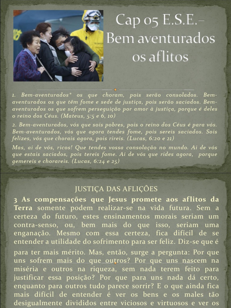 1. Bem-aventurados* os que choram, pois sero consolados. Bemaventurados os que tm fome e sede de justia, pois sero saciados.
