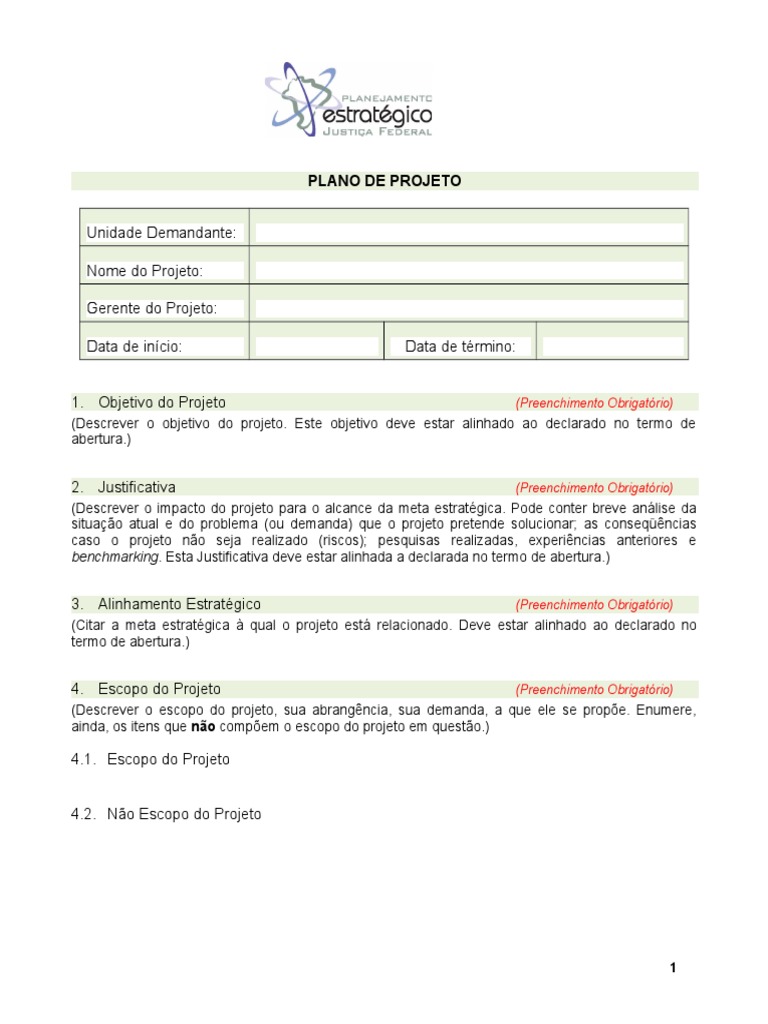 benchmarking. Esta Justificativa deve estar alinhada a declarada no termo de abertura.)