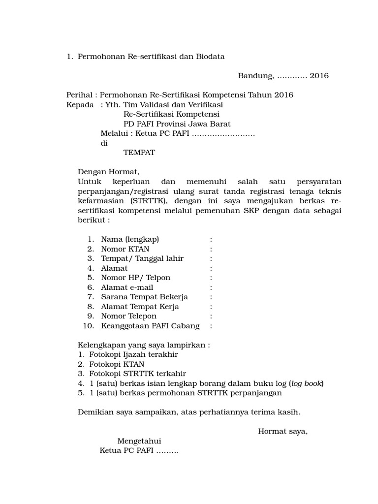 Perihal : Permohonan Re-Sertifikasi Kompetensi Tahun 2016