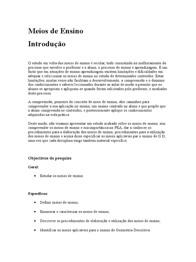 Deste modo, no visamos apresentar um estudo acabado sobre os meios de ensino, sim