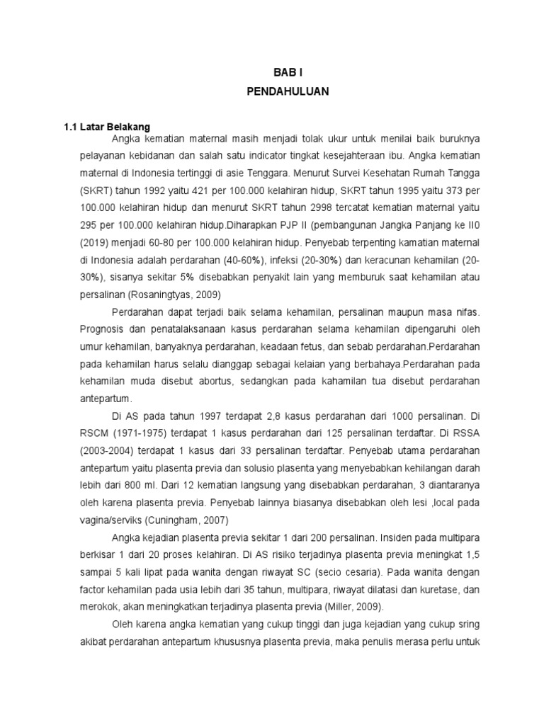 seluruh kasus perdarahan antepartum, plasenta previa merupakan penyebab terbanyak.