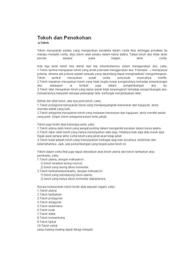 mampu menjalin cerita, atau tokoh ialah pelaku dalam karya sastra. Tanpa tokoh alur tidak akan