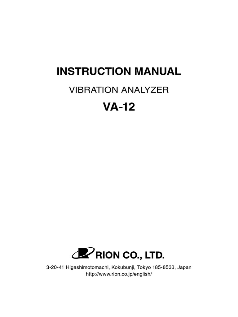 This manual describes the features, operation and other aspects of the Vibration Analyzer VA-12. If the unit is used together with other equipment to configure a measurement system, consult the documentation of all other components as well. The section starting on page v contains important safety precautions. Be sure to read this section carefully.