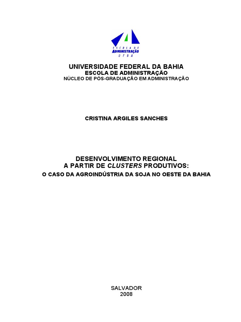 Palavras-chave: Desenvolvimento regional; Clusters; Agroindstria; Soja; Bahia.