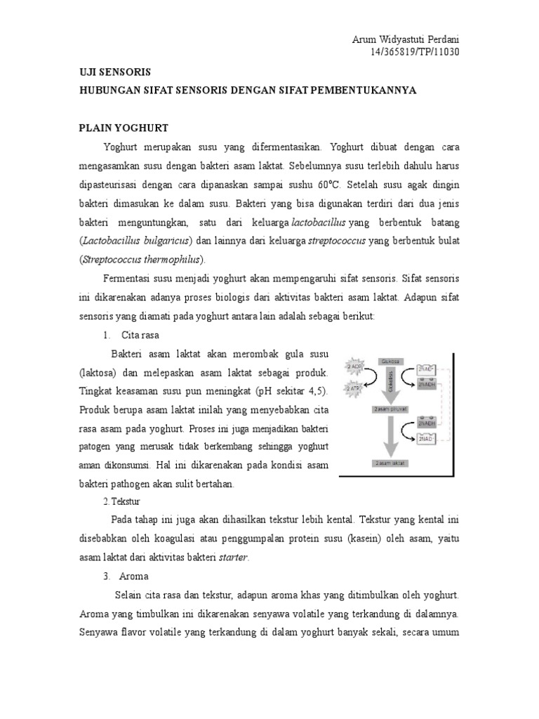 Sifat sensoris pada yoghurt disebabkan oleh proses biologis oleh bakteri asam