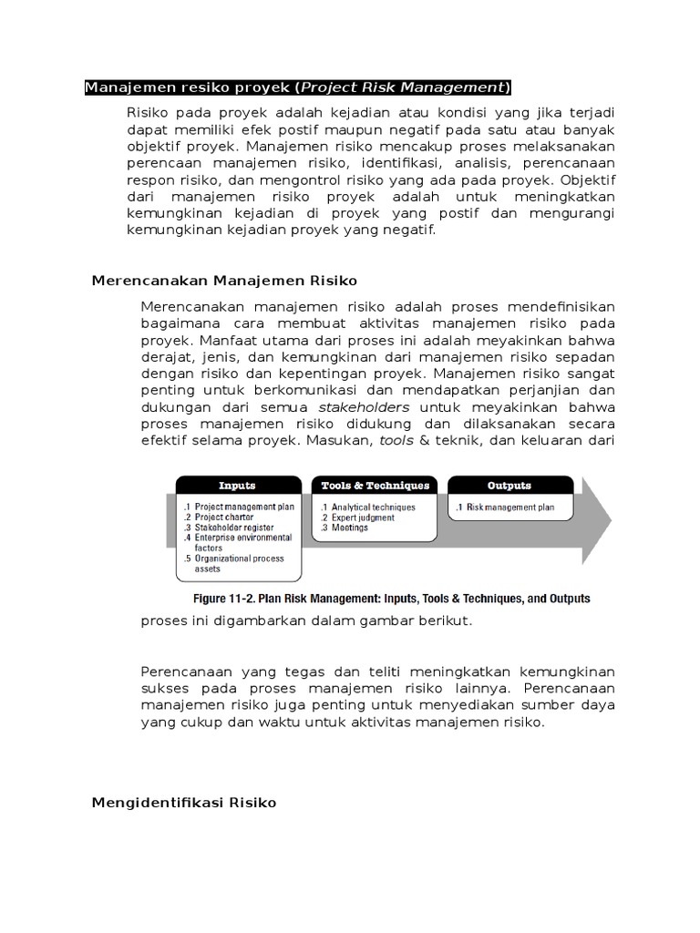 objektif proyek. Manajemen risiko mencakup proses melaksanakan