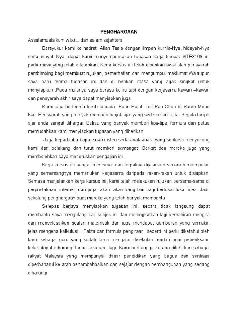 serta inayah-Nya, dapat kami menyempurnakan tugasan kerja kursus MTE3108 ini