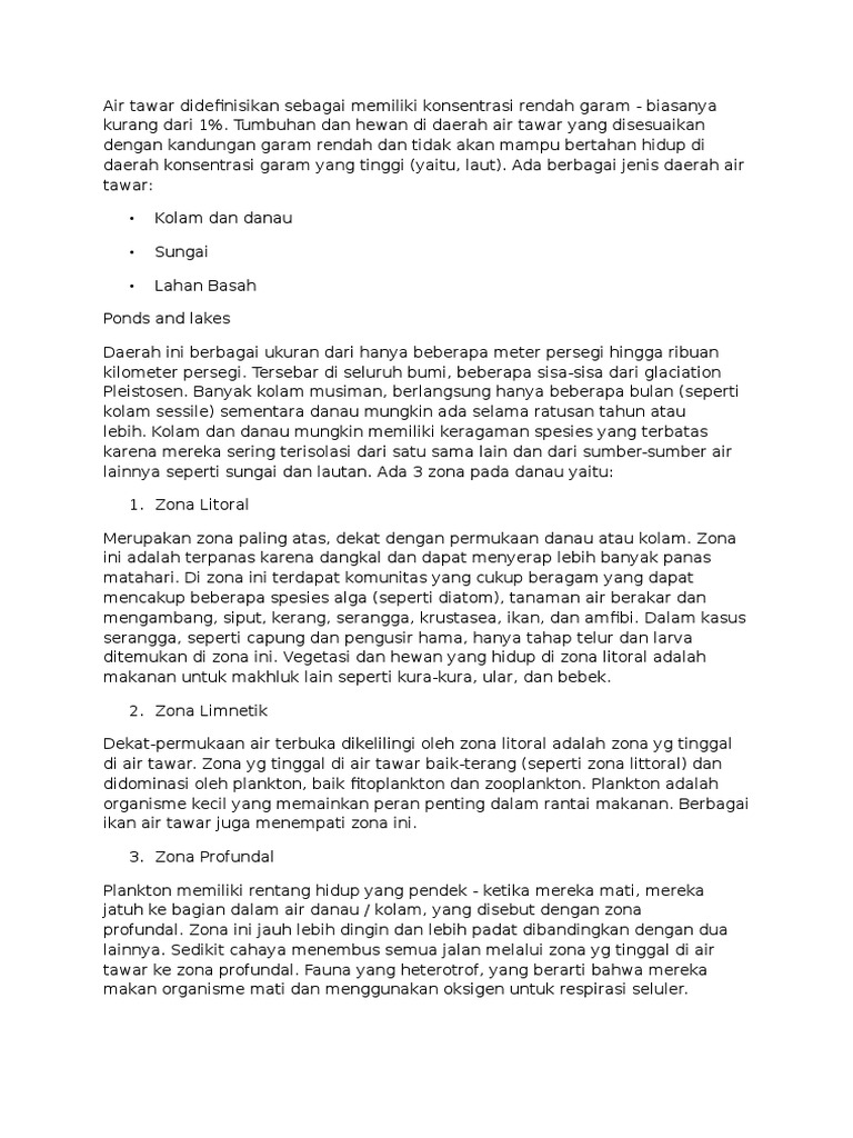 tawar ke zona profundal. Fauna yang heterotrof, yang berarti bahwa mereka
