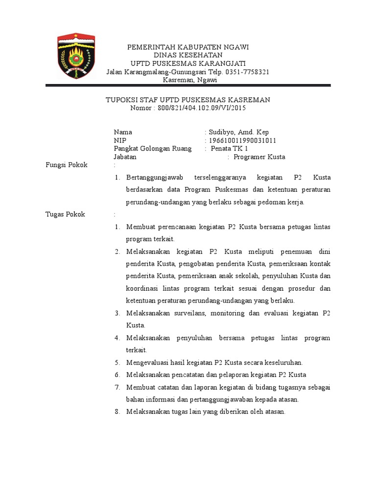 TUPOKSI STAF UPTD PUSKESMAS KASREMAN