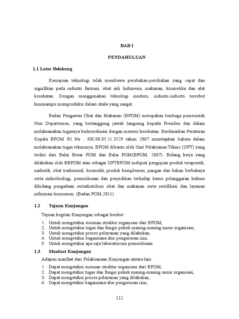 Berdasarkan hasil kunjungan ke Balai Besar POM dikota Surabaya dapat