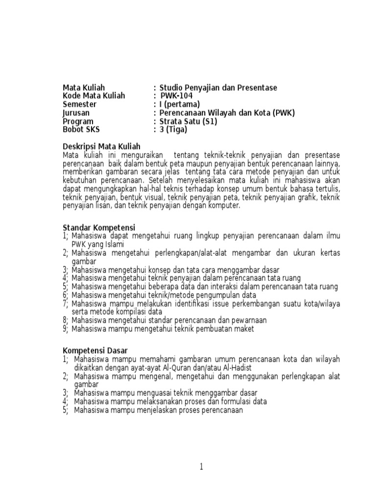 1; Mahasiswa dapat mengetahui ruang lingkup penyajian perencanaan dalam ilmu