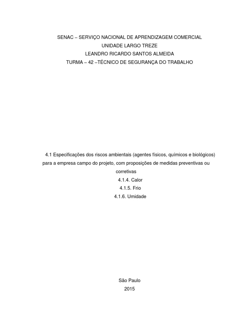 4.1 Especificaes dos riscos ambientais (agentes fsicos, qumicos e biolgicos)