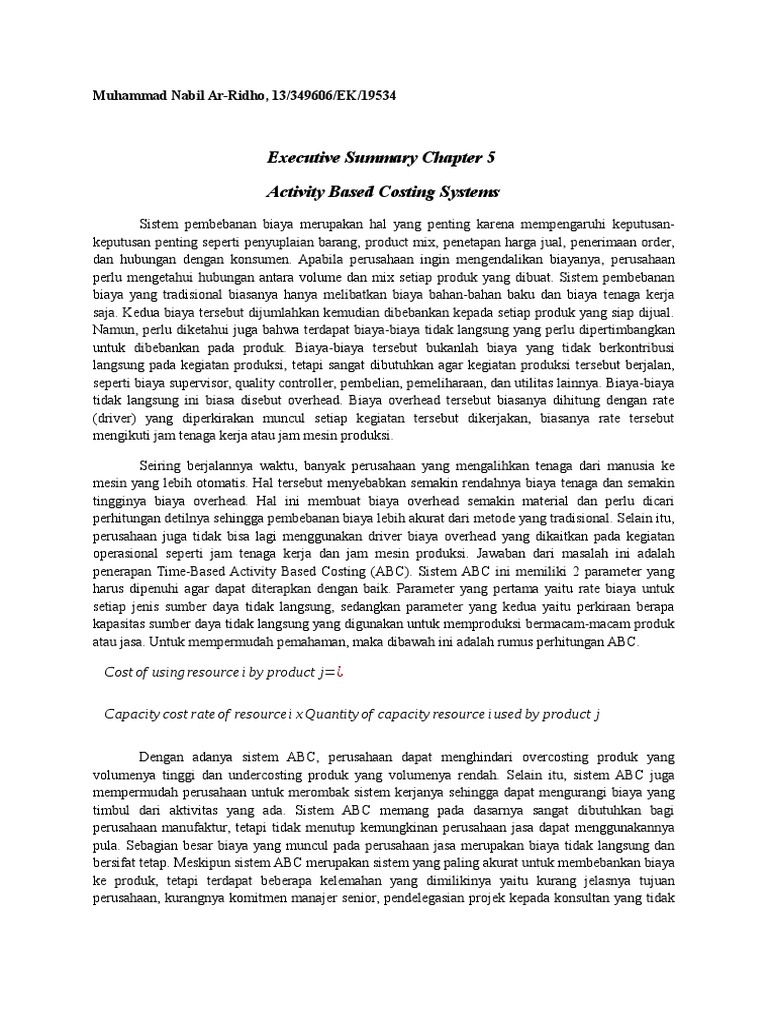 timbul dari aktivitas yang ada. Sistem ABC memang pada dasarnya sangat dibutuhkan bagi