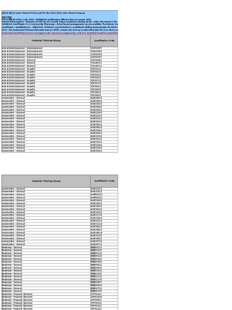 QTIS - the Queensland Training Information Service (QTIS) contains the most up to date information for User Choice qualification funding.