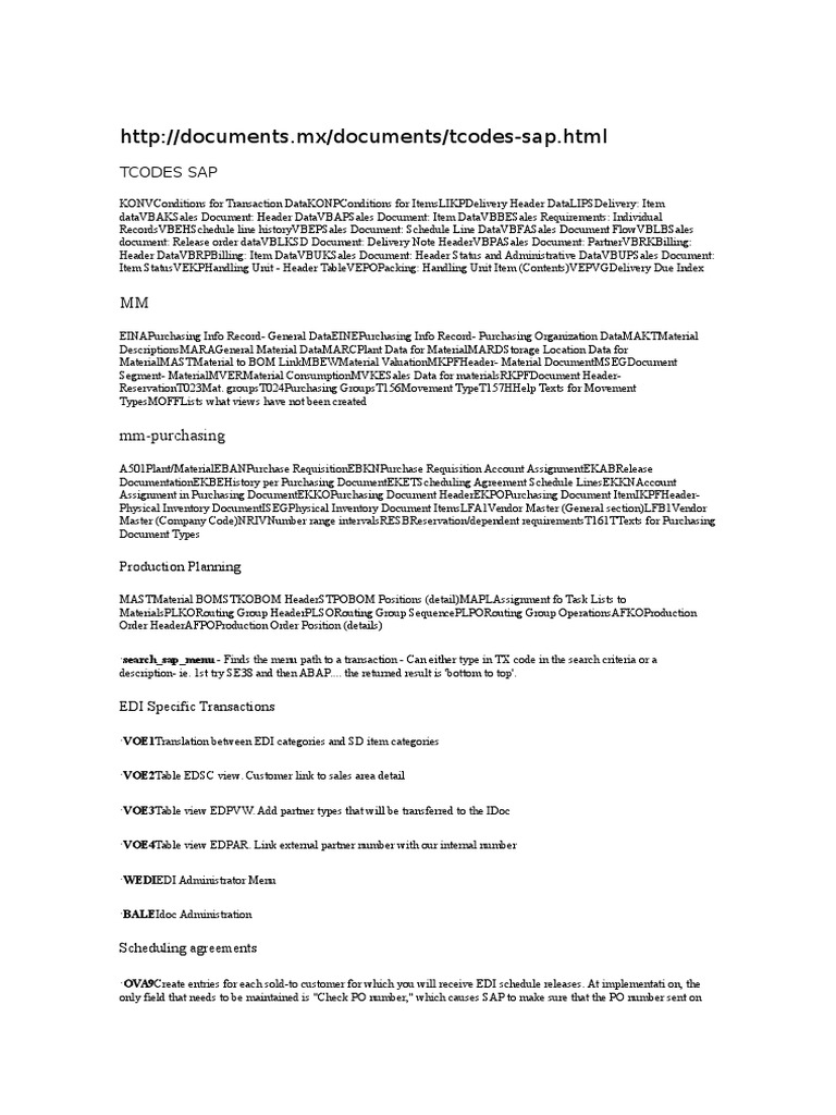 TCODES SAP