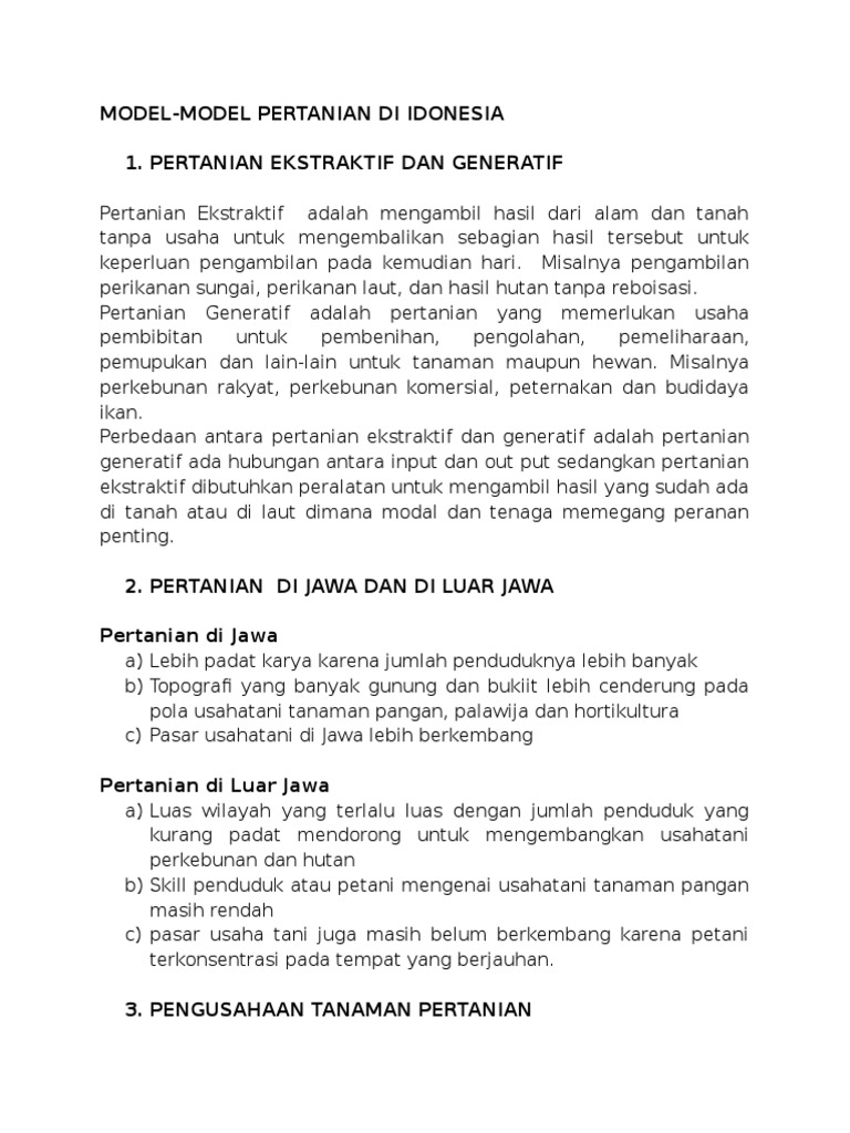 MODEL-MODEL PERTANIAN DI IDONESIA
