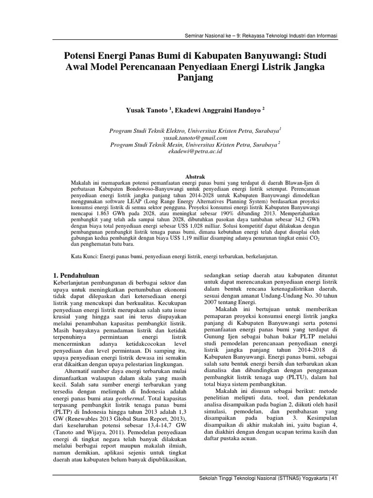 Kata Kunci: Energi panas bumi, penyediaan energi listrik, energi terbarukan, berkelanjutan.
