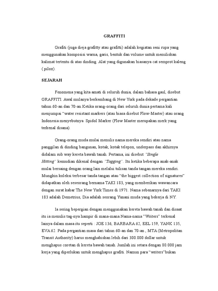 GRAFFITI. Awal mulanya berkembang di New York pada dekade pergantian