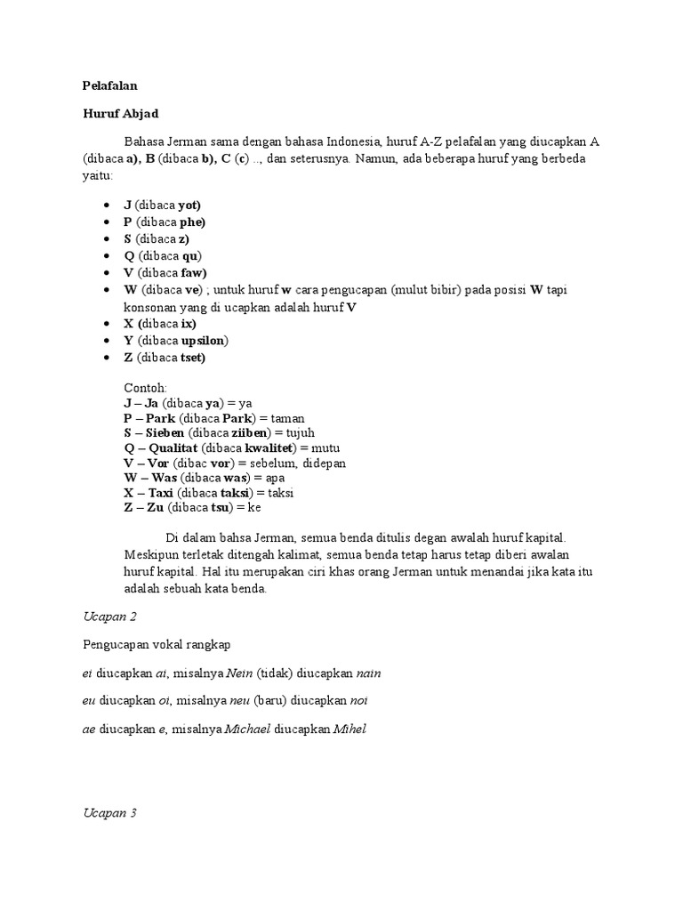 Bahasa Jerman sama dengan bahasa Indonesia, huruf A-Z pelafalan yang diucapkan A