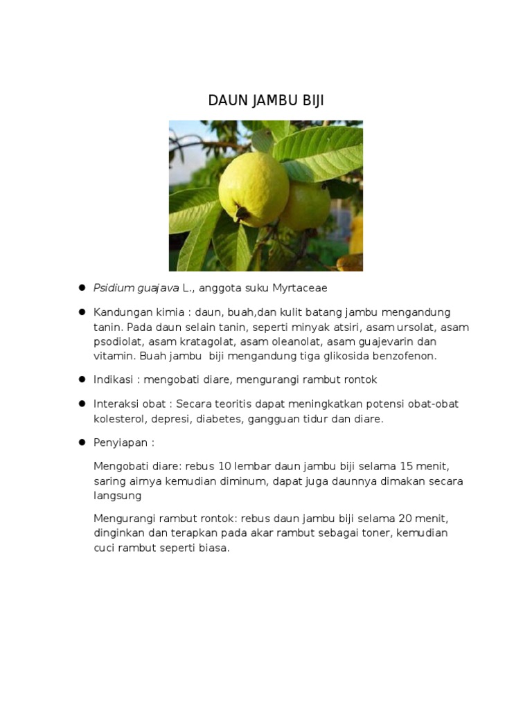 Kandungan kimia : daun, buah,dan kulit batang jambu mengandung