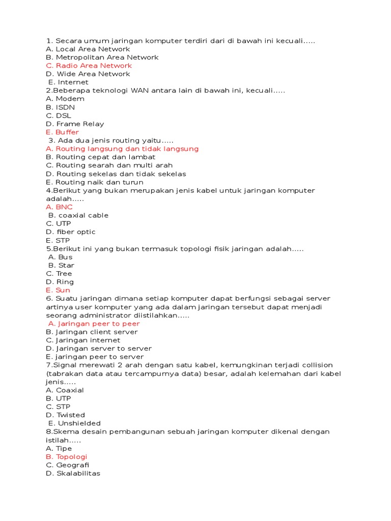 1. Secara umum jaringan komputer terdiri dari di bawah ini kecuali.....