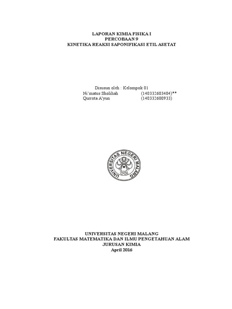 [Link] Fisika III - Kinetika Reaksi Saponifikasi Etil Asetat.