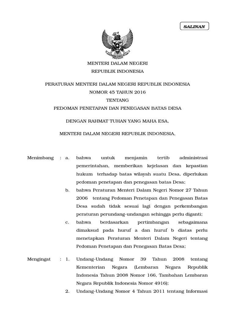 Pedoman Penetapan dan Penegasan Batas Desa;