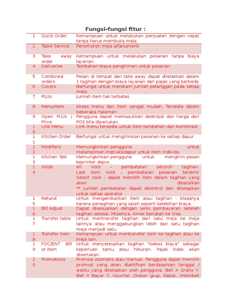Fungsi-fungsi fitur :
