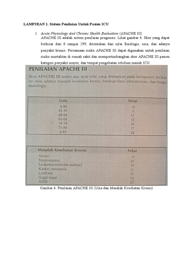 penyakit kronis. Persamaan risiko APACHE III dapat digunakan untuk penilaian