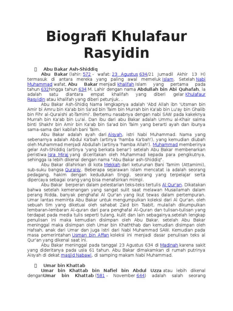 Abu Bakar Ash-Shidiq Nama lengkapnya adalah 'Abd Allah ibn 'Utsman bin