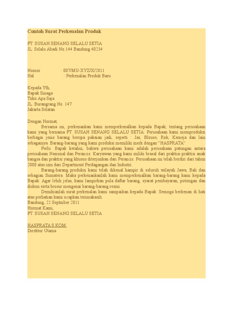 Demikianlah surat perkenalan kami sampaikan kepada Bapak. Semoga berkenan di hati